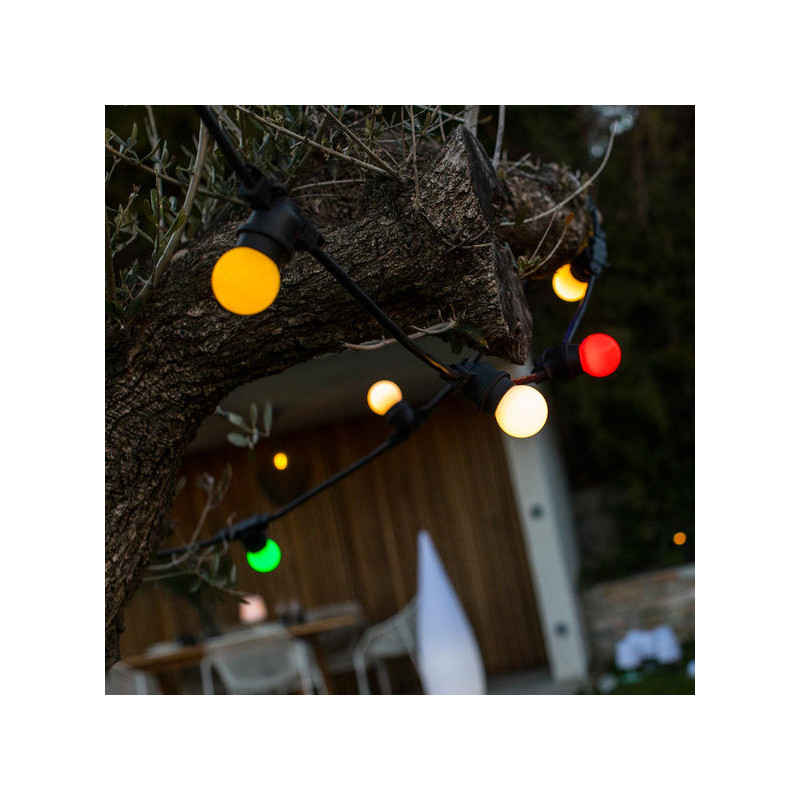 Andererseits wird diese dekorative Lichterkette der beste Begleiter für Ihre Sommerabende sein. Sie verleiht Ihren Veranstaltungen einen trendigen und originellen Touch. Tatsächlich hat sie eine warmweiße Helligkeit, die eine sowohl festliche als auch gemütliche Atmosphäre schafft. Sie kann in 8 verschiedenen Modi eingestellt werden, um Ihren Bedürfnissen gerecht zu werden. Diese Stimmungsbeleuchtung hat einen Lichtstrom von weniger als 100 Lumen.