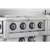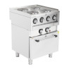 Zusätzlich zu seinen Ofenfähigkeiten ist dieses Modell mit vier Kochplatten ausgestattet, zwei mit 1,5 kW und zwei mit 2 kW, was seine Vielseitigkeit erhöht. Diese Platten ermöglichen es, verschiedene Menüelemente gleichzeitig zuzubereiten, was eine effiziente Zeitverwaltung bei der Zubereitung erleichtert. Das sorgfältig durchdachte Design für eine einfache Reinigung – mit einer gepressten und versiegelten Oberfläche – vereinfacht den täglichen Betrieb und gewährleistet die Einhaltung hygienischer Standards.