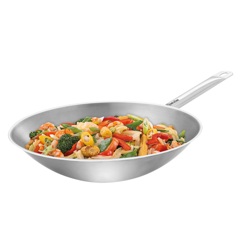 Dieser Aluminium-Wok hat einen Durchmesser von 32 cm. Er ist für alle Herdarten, einschließlich Induktion, geeignet. Aus strapazierfähigem Aluminium gefertigt, eignet er sich für alle Arten von Wärmequellen. Er ist auch für den Einsatz im Ofen geeignet. Abmessungen: ø 320 x (h) 100 mm.