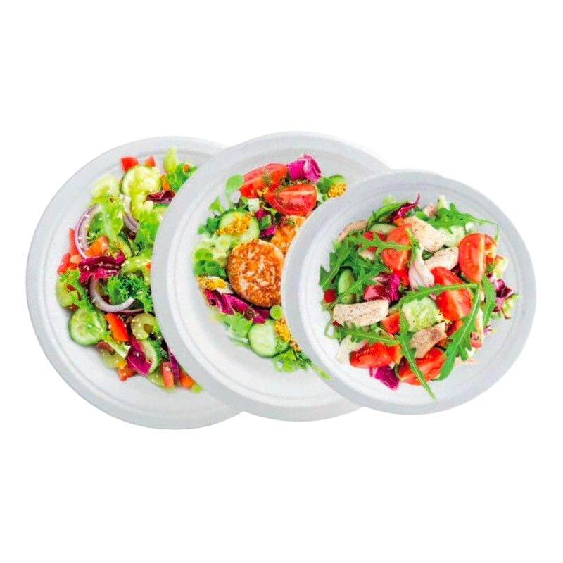 The renewable bagasse material! Made from recycled sugar cane, these plates have a lower carbon footprint than polystyrene packaging and are fully biodegradable. They will completely disintegrate within 12 weeks in industrial composting. This will help divert waste from landfills to more sustainable disposal streams. Since bagasse is made from a renewable natural waste, these plates are respectful of the planet's limited resources and have a lower carbon footprint than standard polystyrene packaging. This will help reduce your environmental impact and show customers that you care about ecological causes.
