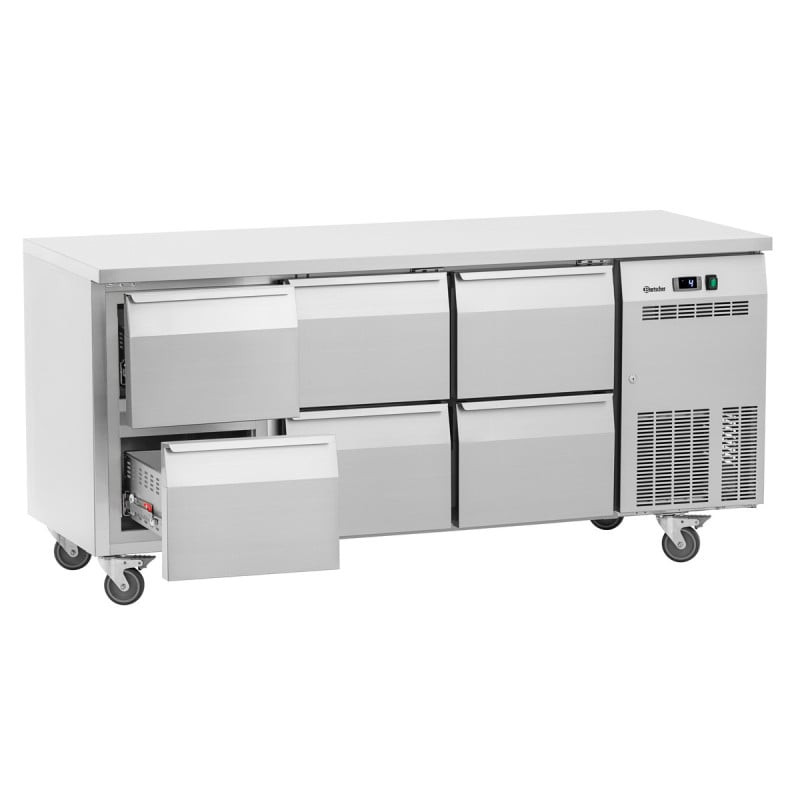 With a volume of 281 liters and dimensions of 1400 mm in length, 700 mm in depth, and 850 mm in height, this refrigerated counter is designed to integrate harmoniously into any type of professional environment. The temperature distribution, regulated by a ventilated cooling system, ranges from -2°C to +8°C, thus ensuring the freshness of stored products. The automatic defrosting also contributes to reduced maintenance and more intuitive use.