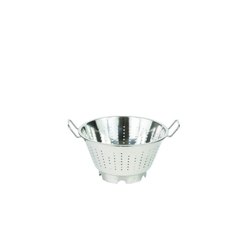 Drain all kinds of ingredients quickly and easily with this Vogue strainer. Featuring two sturdy handles for easy gripping and handling. The numerous holes make it the perfect utensil for draining pasta, rice, and vegetables effortlessly and reducing your preparation time. Made of stainless steel, the strainer is extremely robust and durable, allowing it to withstand rigorous use in professional kitchens.