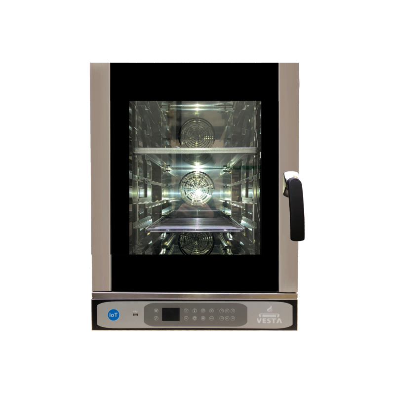 Équipé d'un système de commande numérique facile à utiliser, ce four intègre un écran tactile de 7 pouces permettant aux utilisateurs de naviguer aisément entre diverses fonctionnalités, telles que la programmation de recettes ou le réglage précis de la température. Le panneau offre une interface claire pour accéder rapidement aux modes de cuisson convection, vapeur ou combiné, ce qui augmente la flexibilité et la précision des préparations culinaires.